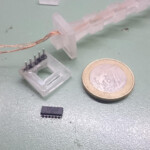 The system is supplied with a 7.5V power supply and draws a current of 40-50mA to hold the magnets (< 400 mW). The power supply is connected to the Arduino-nano Vin-pin and also to one end of the coil. The coil is not very critical, I used a 0.3mm wire and filled up the windings from 7 to 20 mm diameter. The coil length is 20 mm and the resistance is about 30 ohms. The other connection of the coil goes to the drain of a N-channel power MOSFET (5N50 ), the gate of the MOSFET is connected directly to an Arduino output and the source is connected to the ground. For the magnetic sensor I’m using a Hall-Effect chip from Allegro (A1302), the output signal goes directly to an analog input of the Arduino. The 5V supply for the A1302 is coming from the Arduino pin. For optical effects I’m driving some Superleds (Apa102), but this is optional and has nothing to do with the core system.